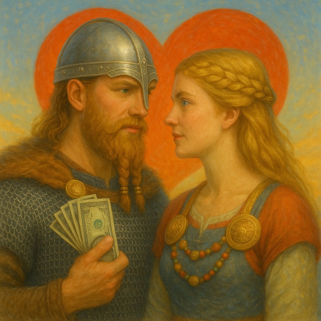 Когда мы слышим слово «викинг», воображение рисует мужественных воинов с топорами, дракарами, громким боевым кличем и жаждой сражений. Но что если мы заглянем за щит и посмотрим в сердце? Как эти суровые северяне относились к любви, семье и браку? Правда ли, что чувства были подчинены расчету? Или у викингов была своя, не менее глубокая и яркая эмоциональная культура? Считается, что у викингов не было места для романтики: все браки якобы заключались ради выгоды, расширения земель и укрепления связей между родами. Отчасти это верно — семейные союзы действительно часто были политическим инструментом. Но забывать о чувствах — значит упрощать реальность. Сага о Бьёрне Железнобоком, о Лагерте, о трагической любви Хельги и Торгунн — всё это не вымысел романтиков нового времени, а свидетельства того, что викинги умели чувствовать. Страстно, глубоко, иногда — разрушительно. Их любовь была не сентиментальной, а яростной. Если уж викинг любил — то до конца. А если ненавидел — тоже. Распространён