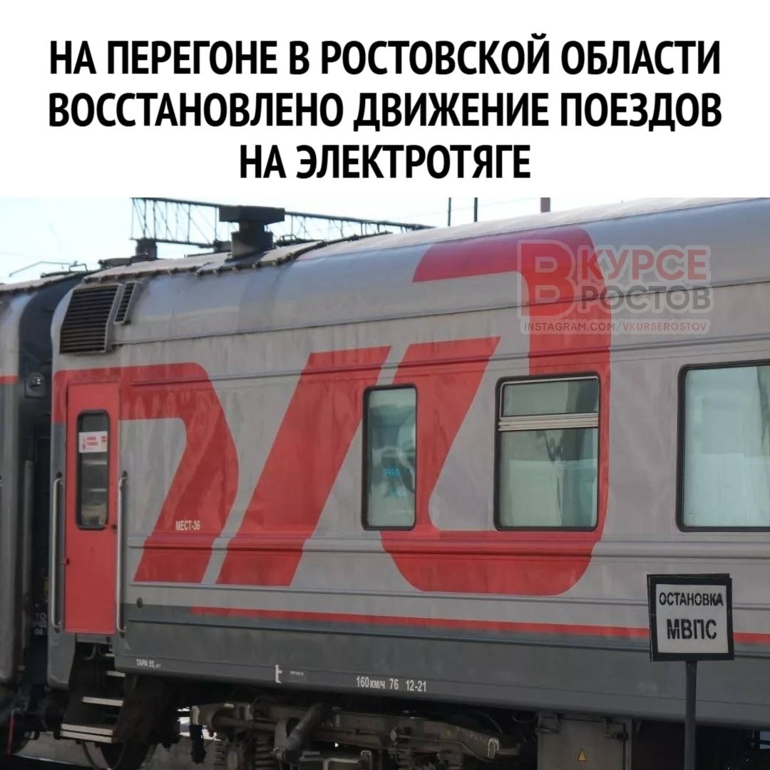 На перегоне в Ростовской области восстановлено движение поездов на электротяге.