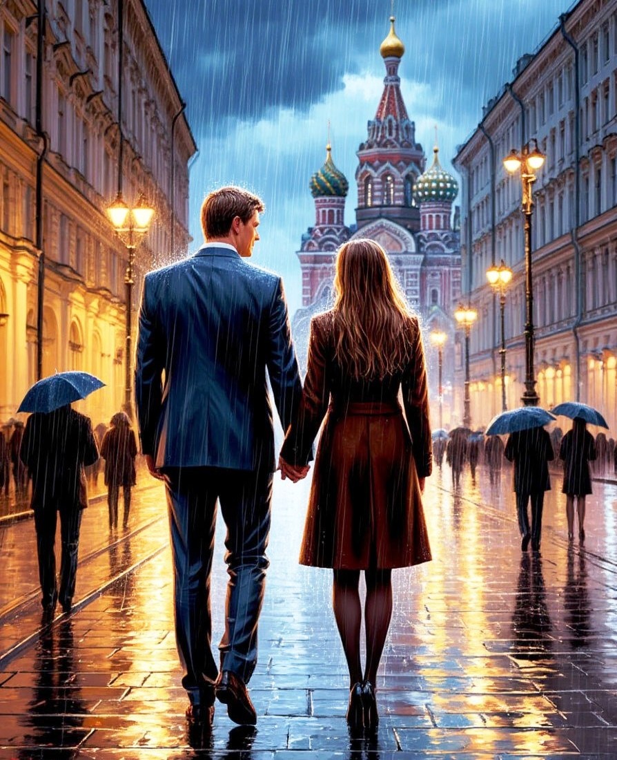 Внезапный ливень обрушился на них стеной воды. Молния разрезала небо ослепительной вспышкой, а дождь плясал дикий танец прямо над их головами. Пока Олег пытался поймать такси, они промокли до нитки.