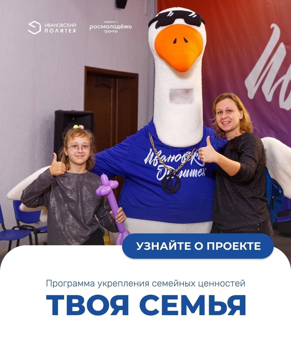 Уже этой осенью студенты и школьники Иванова приглашаются принять участие в уникальной программе укрепления семейных ценностей «Твоя семья», реализуемой в рамках проекта "Живи в Иванове — учись в Политехе"