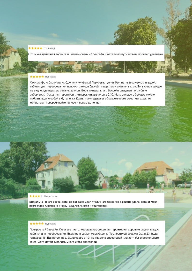 Что посетить в Славске в жару: бассейн с минеральной водой 🏊♂️ Является единственным в Калининградской области открытым минеральным источником. Вода содержит соли и серу, поступает в бассейн с глубины 138 метров естественным путём, без насосов. Бассейн периодически чистят и проверяют на всевозможные инфекции. Три года назад полностью отремонтировали чашу бассейна, сделали освещение, дорожки, парковку и раздевалки. Рядом расположен бювет с минеральной водой, которую можно набрать с собой. И всё это бесплатно! Собрали для вас отзывы гостей об этом месте!