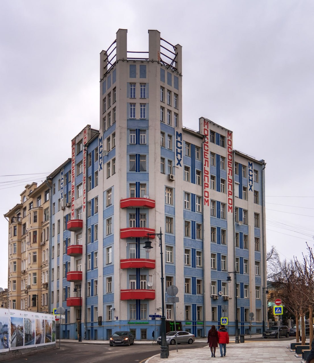 В ответ на пост 🏠Первый советский небоскреб Если вы испытали ощущение дежавю, это нормально: на этой неделе мы уже рассказывали о первом московском небоскребе - доме Нирнзее. Сегодня же речь пойдет о первом советском небоскребе - доме Моссельпрома. Это необычное здание (Калашный переулок, 2) бросается в глаза всем, кто однажды выходил с "Арбатской" и шел по направлению к кинотеатру "Художественный" и Бульварному кольцу. Угловая семиэтажная постройка с башенкой обращает на себя внимание яркой надписью "Моссельпром", однако его история куда богаче одного учреждения. ⛪️Когда-то на этом месте стояла церковь Ионанна Милостивого с пристройками. В пожар 1812 года она, увы, сгорела и была упразднена. Спустя сто лет, когда на участке был трактир и стоянка извозчиков, его приобрел купец Титов. Его воображение видело здесь большой семиэтажный доходный дом, но строители так спешили, что конструкция вышла ненадежной. Через год, ранним утром, одна из внешних стен обвалилась! 🏗Проект Титова так