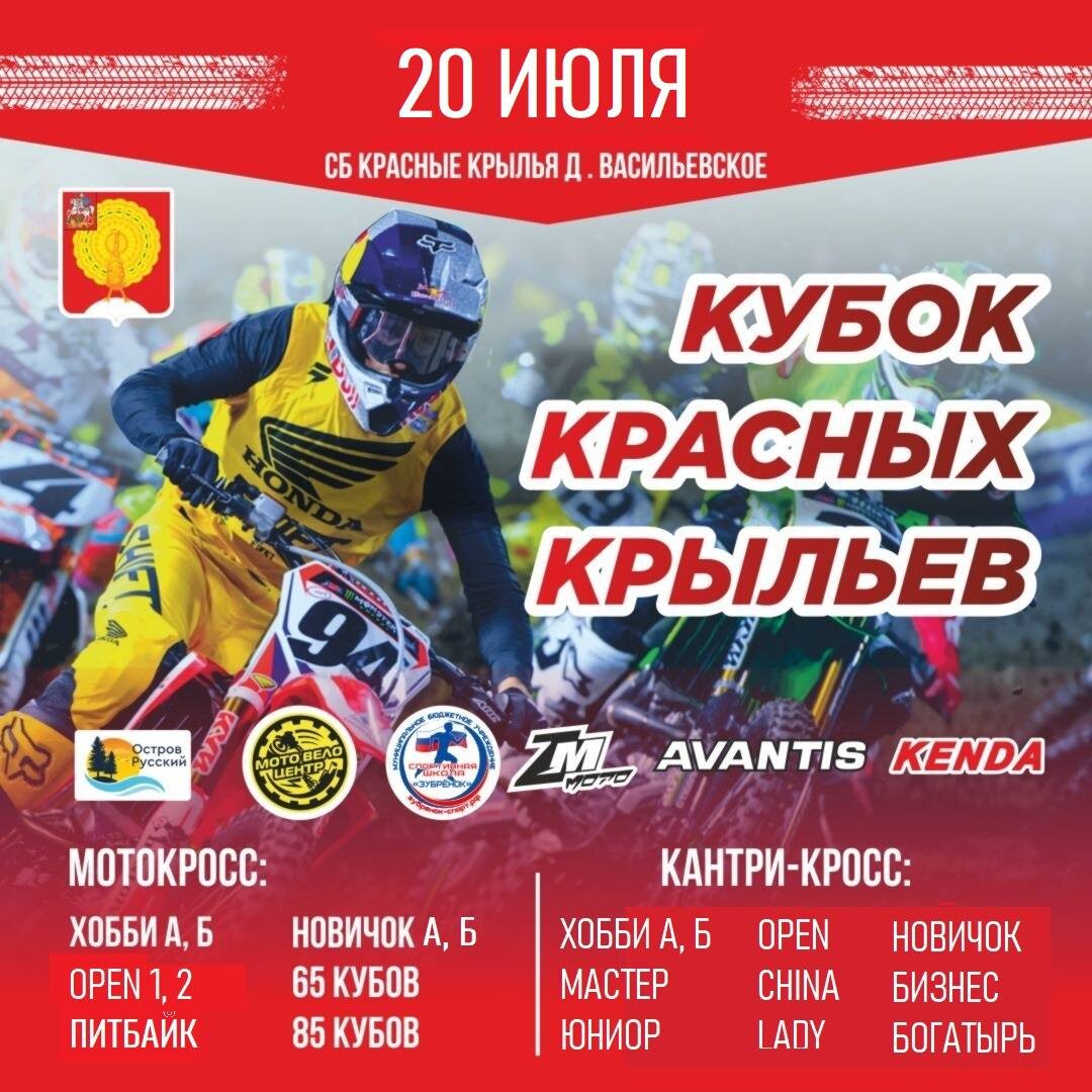 ✨ Кубок красных крыльев 🔥Расписание 07:00-09:00 – регистрация на мотокросс 09:00-12:00 – регистрация на кантри-кросс 09:00 – мотокросс 14:15 – кантри-кросс 🏆16:00 – награждение 🚫 Возраст: 0+ 📆 20.07.2025 🕒 09:00 🏢 СК "Красные Крылья" 📍 г.о. Серпухов, д. Васильевское 💰 Вход свободный❗️ #webСерпухов ⭐Разместить публикацию ⭐Поддержать канал голосом 💰 Стань курьером в Серпухове – твой доход, твое время! ✅ Мероприятия Серпухов https://dzen.ru/id/66f01c6eb4c6fe60c9ca1608 http://vk.com/serpukhov_events http://dzen.ru/serpukhov_events