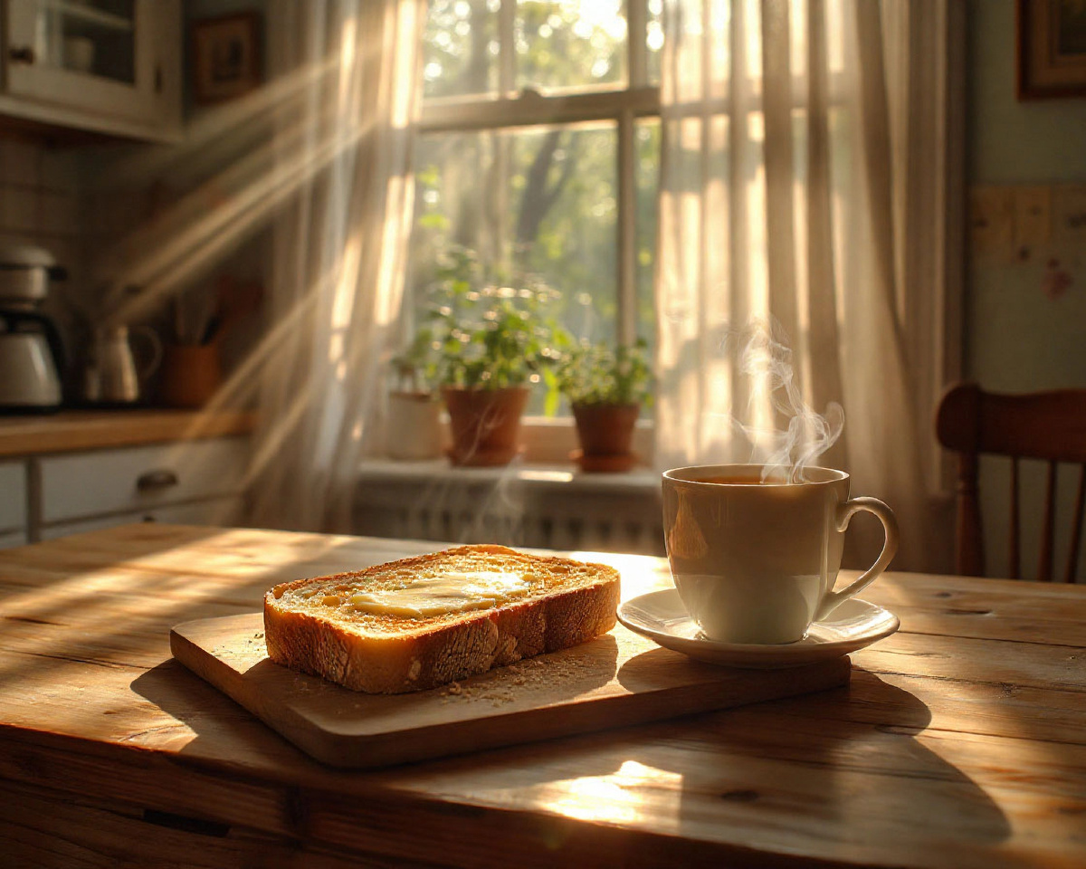 Идеальное воскресенье сегодня выглядит вот так: Я открываю глаза - и не соскакиваю в спешке с кровати. Не тянусь к списку дел, не проверяю календарь, не обещаю себе быть продуктивной с десяти утра. Я просто лежу. Дышу. Слушаю, как за окном галдят индюки, петухи пытаются перепеть друг друга, куры воодушевленно кого-то обсуждают, а жизнь не торопится. На кухне тепло и тихо. В тостере щёлкает ломтик хлеба. Из холодильника достаётся настоящее сливочное масло, не обезжиренное, не «фитнес», а то самое, жирное и правильное, которое сразу тает на горячем. И больше ничего не нужно. Никаких грандиозных замыслов, утренних марафонов и «успеть до обеда». Только солнце, чай с липой, и я: без спешки, без надобности быть кем-то особенно правильным. Сегодня разрешено просто быть. Просто завтракать, просто улыбаться кошкам, просто смотреть, как пыль танцует в лучах. Это напоминание себе: я человек.