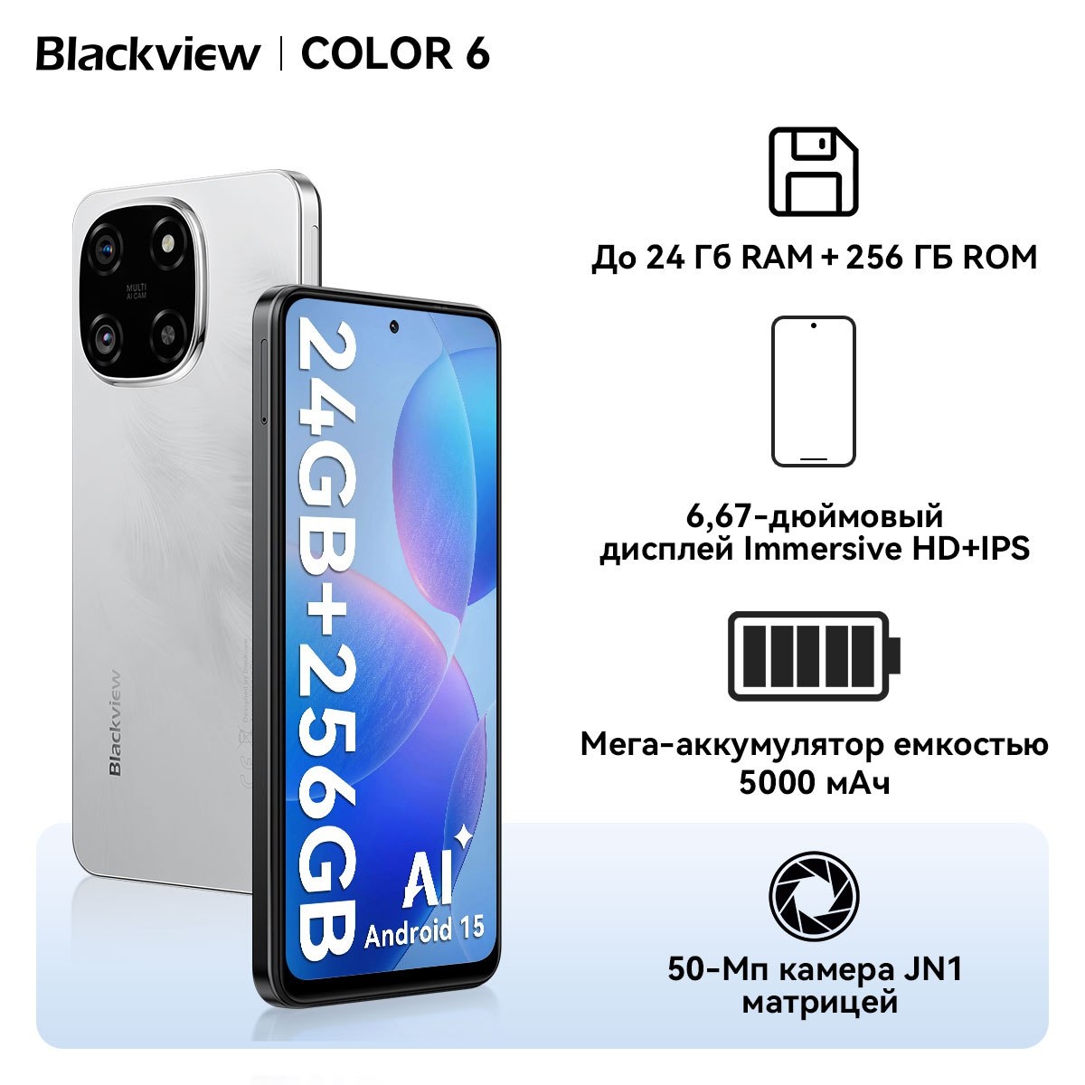 Blackview новинка стильный смартфон COLOR 6 на OZON, 8 ядер процессор Helio G81, 3 цвета на выбор.