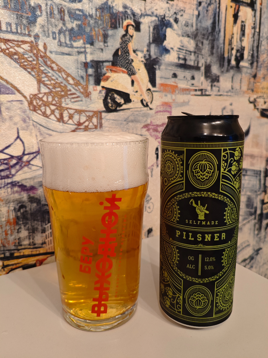 Как понятно из названия, сегодня пробую пилснер от московской пивоварни SELFMADE. На сайте пивоварни описания нет. На UNTAPPD тоже тишина. ********************************************************************************** Плотность: 12%. Горечь: 32. Состав: вода подготовленная, солод пивоваренный ячменный светлый, хмель гранулированный, дрожжи. Срок годности: 240 суток при температуре хранения от 0℃ до +16℃. С даты розлива моей банки прошло чуть менее 5-ти месяцев. ********************************************************************************** Шапка пены пышная и вполне стойкая. Аромат солодовый с лёгким цитрусово-тропическим оттенком, за которым не ощущается травянистости, которой бы лично мне хотелось чувствовать в пилснере. Карбонизация умеренная. Вкус... Честно говоря пилснер напоминает весьма условно. На мой вкус, конечно. Солодовый сладковато-кислый с оттенком чего-то тропическо-фруктового на первом плане и цитрусовым отголоском на заднем. Очень мягкий вкус с весьма деликатной