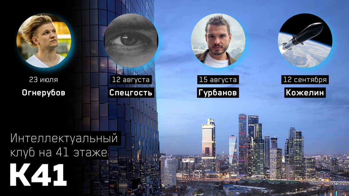 События в Интеллектуальном Клубе К41 в ближайшие 2 месяца на 41 этаже — 23 июля: Стресс без права на ошибку: исповедь кардиохирурга. Дмитрий Огнерубов провёл 1600 операций на сердце, хирург и предприниматель — про управление стрессом и создание команд, которые спасают жизни. Как применить подходы из фундаментальной медицины в бизнесе. После 2-го выступления поднимем бокалы 🥂 за мой ДР! — 12 августа: Читай людей, как книгу. Лучшие техники спецслужб мира. Договорился с человеком, кто служил там 15 лет, на 2-й визит. Как быстро установить контакт; понравиться человеку; стать другом, и даже больше; предугадать риски; понять мотивы; узнать, как лгут люди. Сразу соль, динамично, мощно. — 15 августа: АI-буст руководителя: инструкция от FinTech-гуру. Рассказ из свежего личного опыта про нейросети для: 1) сборки команд, 2) коммуникаций, 3) фреймворк создания стратегии. Кирилл Гурбанов, опыт: Самолёт Банк, управляющий партнёр; CPO в Сбер Бизнес; CDO в МТС Банк. Эксклюзив в К41. — 12 сент