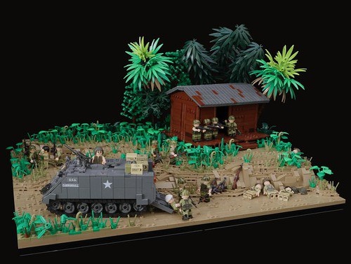 Горячие джунгли в LEGO-диораме от Nicholas Goodman! В этой потрясающей сцене — тропическое поле боя с детализированной бронетехникой, укрытиями и пальмами. Фигурки солдат расставлены так реалистично, что кажется, будто слышны выстрелы. GoodmanLegoCreations снова поразил вниманием к деталям и атмосфере! Источник: Flickr Lego group