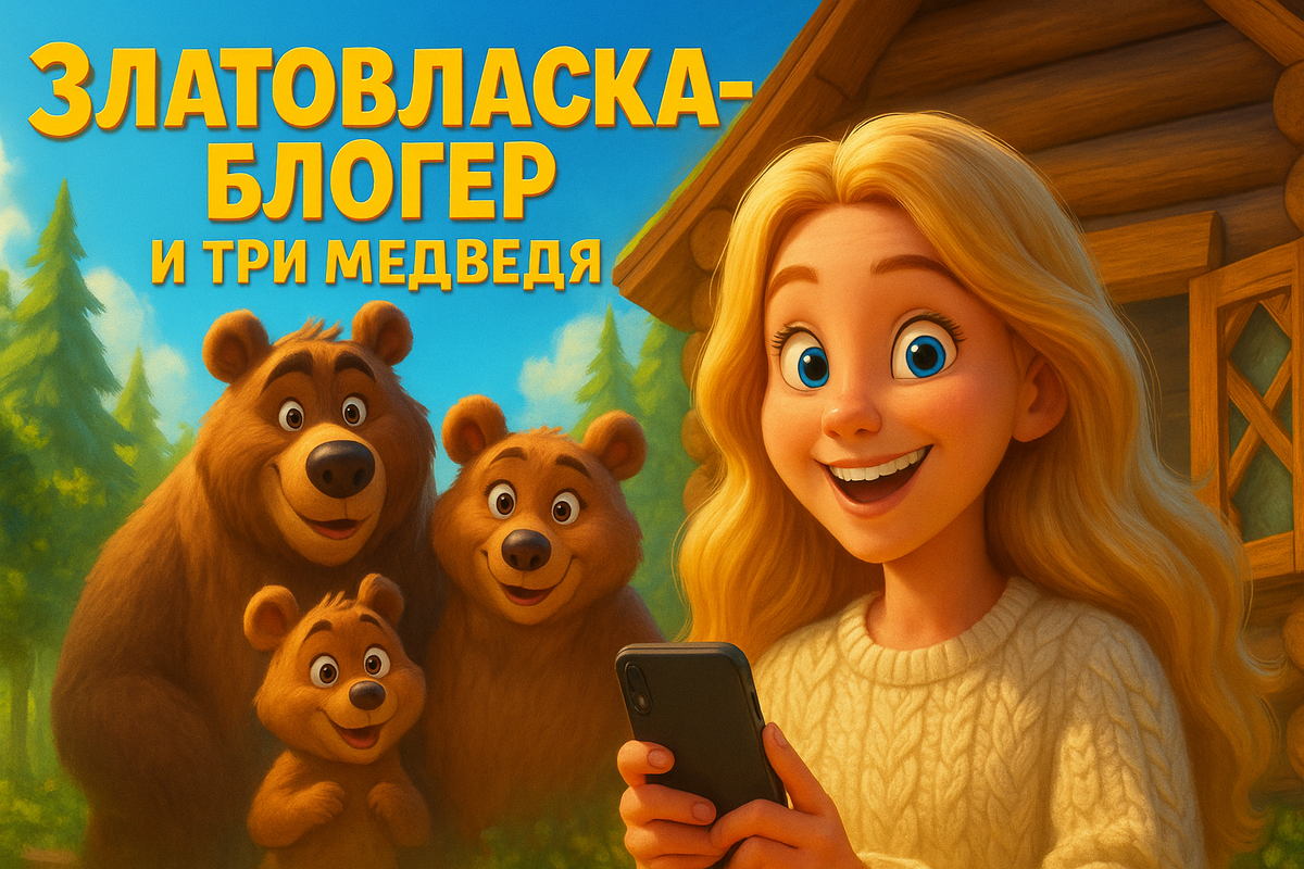 Друзья, перед вами сказка-шутка. Посмеемся вместе над причудами нашего времени? 😉 ---------------------------------------------------------------------------------------------- Жила-была девочка, которую никто не звал по имени, потому что все знали ее по нику в соцсетях: Goldie_Locks_Aesthetic. Или Златовласка, если по-простому. Златовласка была не просто девочкой, она была контент-креатором. Ее жизнь была бесконечным поиском аутентичных локаций, идеального света и той самой неуловимой «эстетики хюгге». Однажды, блуждая по лесу в поисках «нетронутой природы для нового рилса», она наткнулась на домик. Не просто домик, а идеальную фотозону: деревянный, с резными ставнями, окруженный мхом. Это, как вы уже могли догадаться, был домик трех медведей. — О, боги! — прошептала Златовласка, доставая телефон. — Это же чистый коттеджкор! Подписчики будут в восторге. Дверь была не заперта (видимо, у медведей были проблемы с пониманием концепции частной собственности). Златовласка, не раздумывая, в