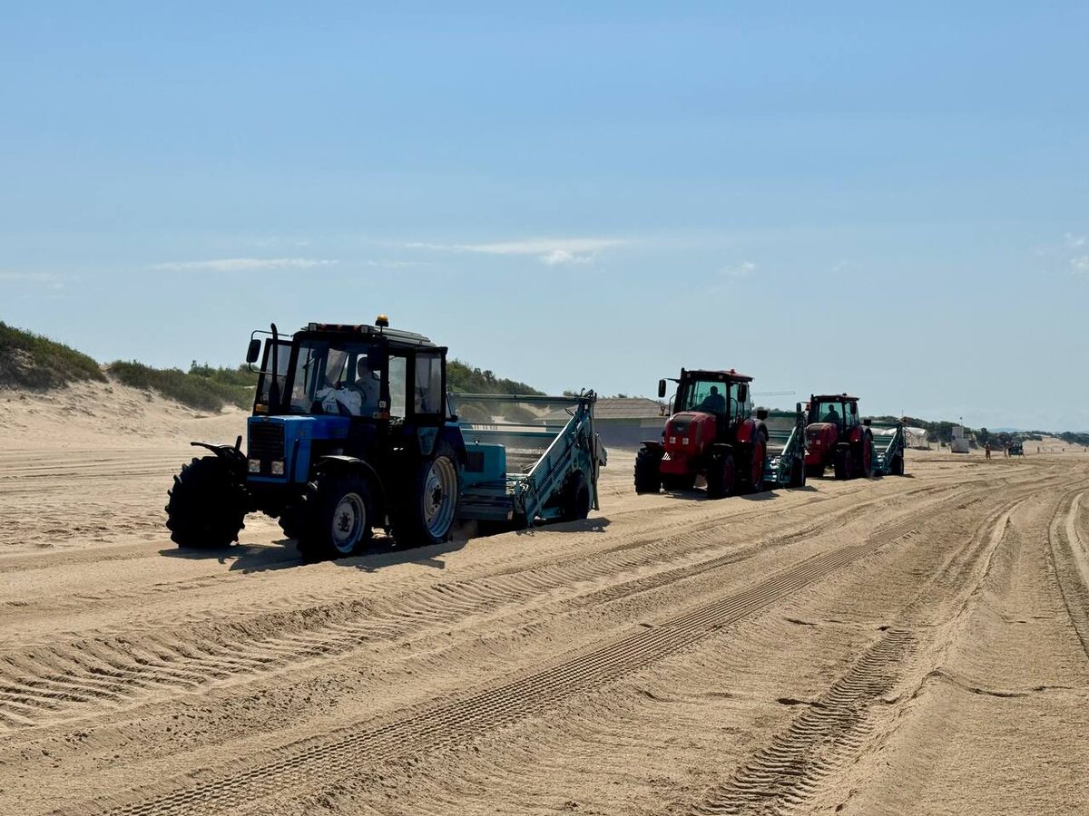 Более 15 единиц спецтехники задействовали на очистке пляжей Анапы Продолжается системная механизированная очистка пляжных территорий города-курорта. Сегодня работы ведутся на береговой линии в районе устья реки Можепсин. -На одних участках ведется финальное просеивание, на других – еще первичное. Работает техника, которая вывозит просеянный замазученный песок для дальнейшей утилизации,-рассказал директор ООО «Курорты Анапы» Николай Заливин. Он уточнил, что в настоящее время всего в уборке на береговой линии от устья реки Можепсин до детского лагеря «Жемчужина России» задействовано более 15 единиц спецтехники. Подписаться на Новости Анапы