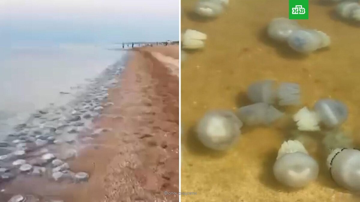 [ Смотреть видео на сайте НТВ ] Туристы, отдыхающие на берегу Азовском моря, пожаловались на нашествие медуз. Как рассказывают туристы, пляжи усеяны тысячами медуз, которые сильно жалятся и не дают зайти в море. Отдыхающие жалуются на ожоги и ужасный запах на берегу. По словами специалистов, ядовитые медузы-корнероты расплодились из-за засухи и теплой зимы, а ветер прибил их берегу. Также специалисты предупредили, что даже одна медуза может причинить сильные ожоги. [ Смотреть видео на сайте НТВ ]
