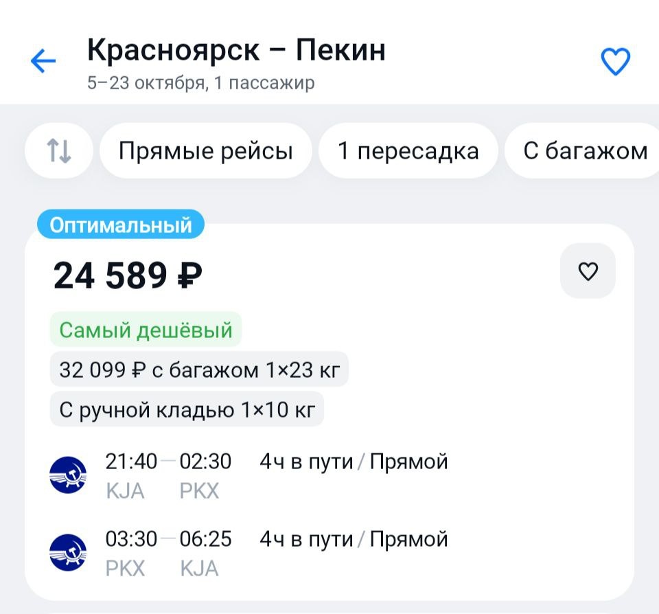 10 идей для ваших осенних путешествий 🍁🍁🍁 📍Пекин - 24500₽ ↔️ без багажа https://aviasales.tpm.lv/PtCKRZfo ➕ Из Пекина до Бали через Куала-Лумпур ➡️ и Хошимин ⬅️ за 17900₽ ↔️ https://aviasales.tpm.lv/fx4AhbhZ ➕ Из Пекина в Сеул за 14700₽ ↔️ https://aviasales.tpm.lv/3HqSnXQ9 📍Пхукет - 48200₽ ↔️ с багажом https://aviasales.tpm.lv/CJGZBJtV ➕ С Пхукета в Сингапур - 9400₽ ↔️ https://aviasales.tpm.lv/e5BcbLdS 📍Алматы - 20800₽ ↔️ без багажа https://aviasales.tpm.lv/BtUuTY6C 📍Санья - 48400₽ ↔️ без багажа https://aviasales.tpm.lv/8BDHXCtw 📍Бишкек - 19900₽ ↔️ с багажом https://aviasales.tpm.lv/5NJkgv7I 📍Стамбул - 36400₽ ↔️ без багажа (через Новосиб) https://aviasales.tpm.lv/AB9brxT9 📍Ереван - 41600₽ ↔️ с багажом https://aviasales.tpm.lv/pgaslwze 📍Анталья - 36900₽ ↔️ с багажом https://aviasales.tpm.lv/lBWxZAeO @KJA