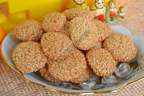 Печенье с кунжутом От автора: Печенье с кунжутом получается хрустящим и вкусным, обязательно попробуйте. Ингредиенты: Кунжут - 100 гр. Яйцо - 1 шт. (нужен только белок) Сахар - 50 гр. (2 ст. л.) Ванилин - 1 гр. Источник: https://rusdinner.ru/page/pechene-s-kunzhutom