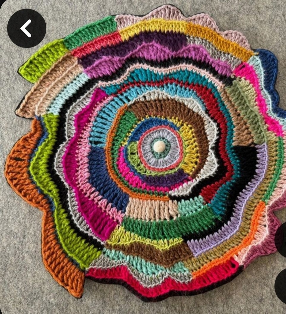 Помните, я писала о ковриках в технике фриформ? Вот этих, что можно связать крючком из остатков пряжи, которых у любой вязальщицы — на два ковра и ещё шарфик для кота?