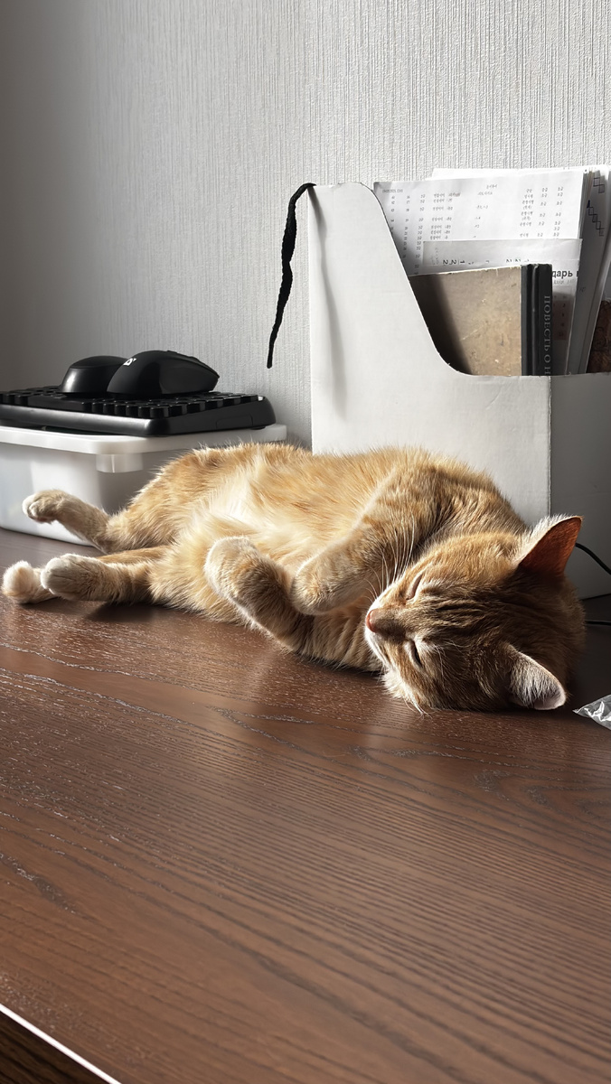 Наша рыже-белая примадонна, Василиса, звезда этого канала и вдохновительница всех постов, тоже имеет четко сформированное мнение о столах. Ее излюбленное место дислокации – рабочий стол. Здесь она не просто присутствует – она работает. Серьезно! По ее кошачьему разумению, ее обязанности включают: