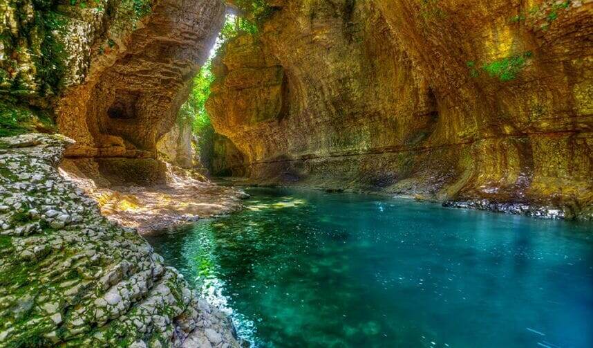 Бирюзовые реки, струящиеся меж отвесных скал, поросших мхом, водопады, срывающиеся в кристальные бассейны, и густые леса, шепчущие древние легенды — Мартвильский каньон в Грузии словно вырван из сказки о затерянном мире. Это место, где вода искрится, как драгоценный камень, а воздух пропитан ароматом мокрых листьев и горной свежести.