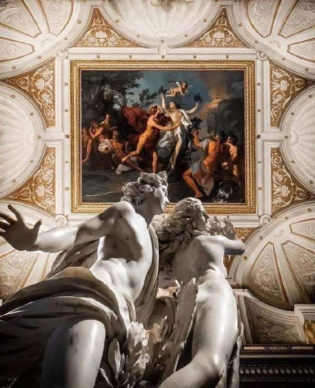 Потолочная картина художника Пьетро Анджелетти и одноимённая скульптура от мастера Лоренцо Бернини.