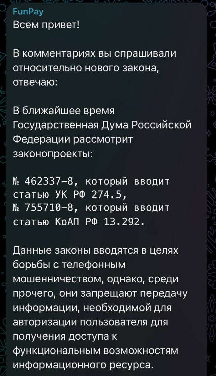 ⚡️Геймеры останутся без бустов и продаж аккаунтов всё из-за нового закона о запрете передачи аккаунтов. Биржи уже начали ограничивать: Покупку или продажу аккаунтов с играми; Передачу своего персонажа в MMO на прокачку; Передачу аккаунтов для буста рейтинга. Из-за новых законов, банки просто отказываются обрабатывать платежи с подобными услугами. Геймеры, держитесь. CtrlAltDelights- подписаться