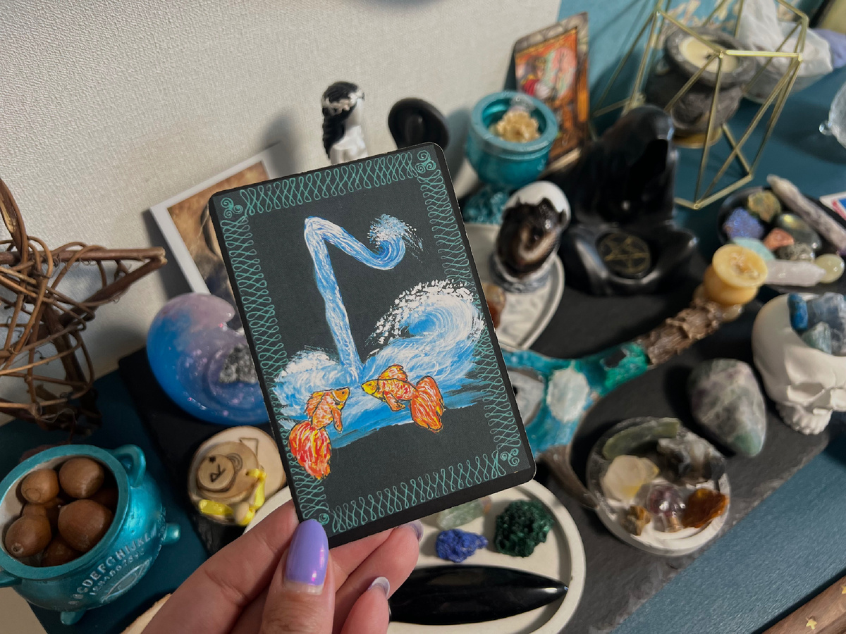 Руна Лагуз — 21-я руна в Старшем Футарке. Она символизирует поток. Воду, интуицию, глубину и движение, которому мы не всегда можем (или должны) сопротивляться. Это одна из тех рун, к которой у меня всегда особенное отношение. Когда она выпадает в раскладе, я не жду от неё чётких ответов. Скорее — ощущений, образов, мягких толчков в нужную сторону. С Лагуз нельзя торопить события. С надо слушать, куда ведёт течение. И если ты откроешься, не упираясь — она может принести по-настоящему важные перемены. 🖤Узнать больше о рунах и изучить трактовки других рун вы можете в этом разделе. В дословном переводе laguz — «вода» . Но это не спокойная гладь. Это живая, текучая, подвижная стихия. Она не любит насилия и контроля. Её нельзя схватить или разложить по полочкам. Её можно прожить, почувствовать, довериться. Лагуз связана с женской магией, циклами, подсознанием, сном, сновидениями, творчеством, эмпатией, телесной чувствительностью. Это мягкая, но сильная руна. Её сила — не в напоре, а в у