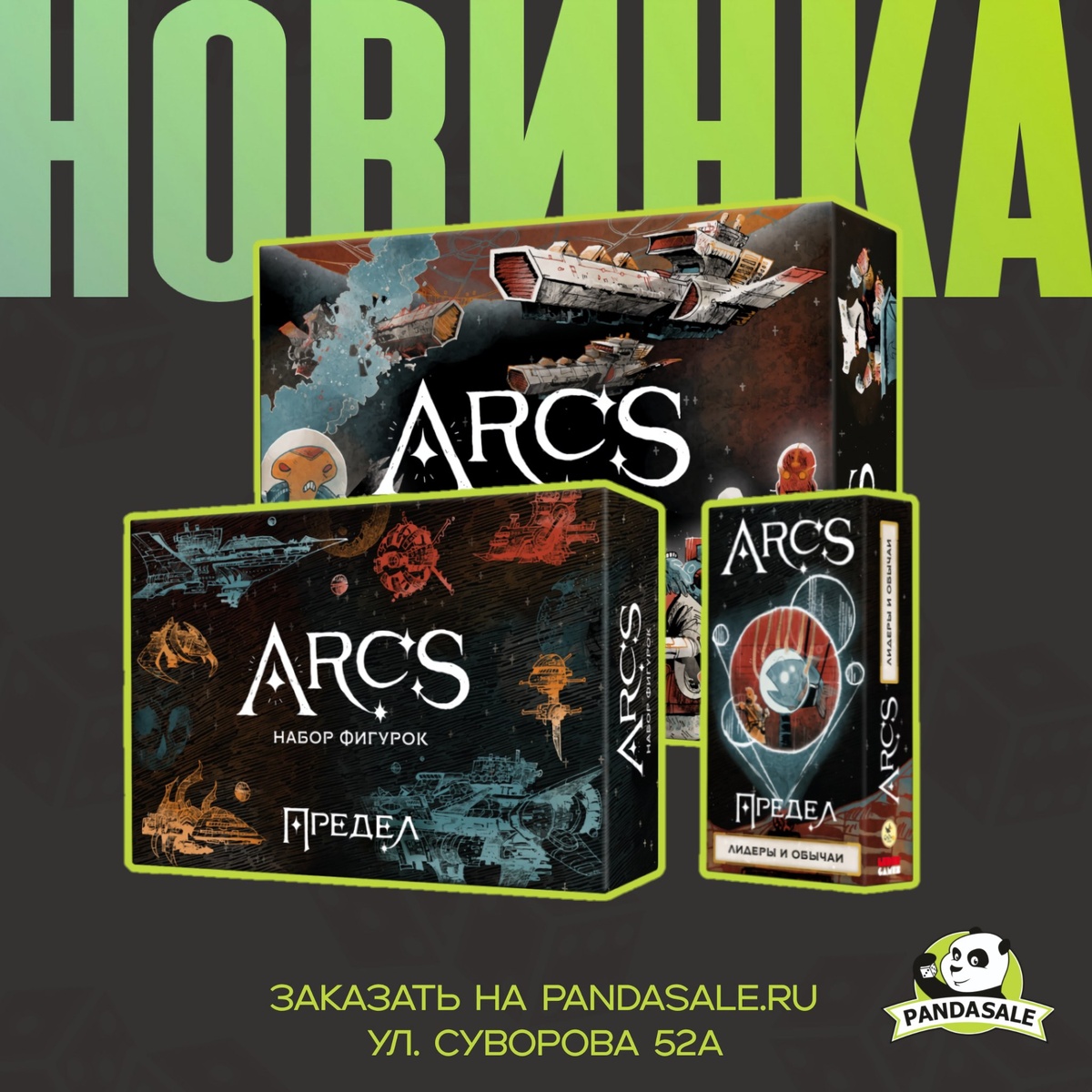 💥 Снова в наличии в PandaSale — Arcs: Раздор и Падение. А также несколько новинок-дополнений к нему: Лидеры и обычаи и Набор фигурок! 🐼 Arcs. Лидеры и обычаи: превращает абстрактную стратегию в насыщенную космическую сагу — с яркими персонажами, асимметричными стартами и новыми тактическими возможностями. Каждый лидер обладает своими сильными и слабыми сторонами, а обычаи придают партиям глубину, не усложняя правила. 🐼 Сделать партии более увлекательными → 🐼 Arcs. Набор фигурок: дополнение с миниатюрами для заменяет стандартные деревянные компоненты на детализированные пластиковые фигурки кораблей, агентов и флагманов для каждой фракции. Это не только визуально усиливает атмосферу, но и делает партии ещё более захватывающими. 🐼 Расширить визуальную атмосферу → 🐼 Arcs. Раздор и Падение: это эпическая настольная игра от автора Root и Oath, где вы возглавляете фракцию в раздираемой конфликтами галактике. В борьбе за власть, влияние и выживание вам предстоит сражаться, заключать