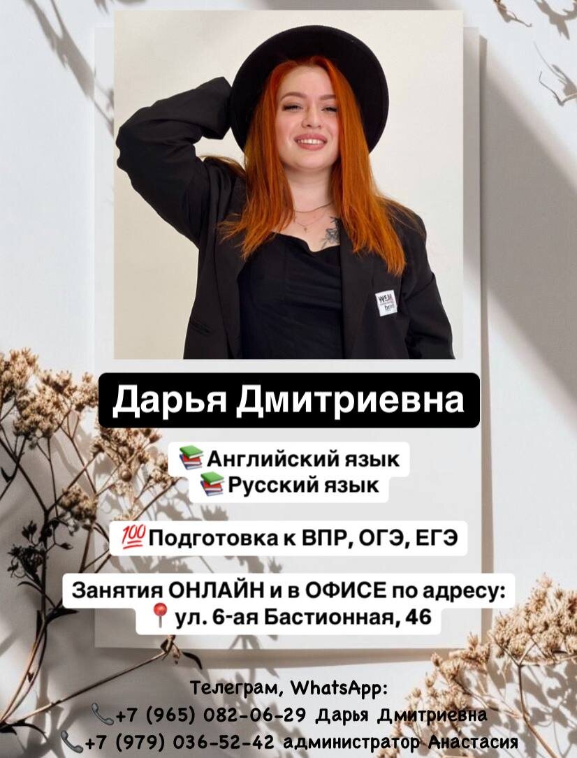 Дорогие друзья, спешим сообщить, что у нашего замечательного преподавателя Дарьи Дмитриевны остался последний свободный слот на занятия по русскому 🇷🇺 и английскому 🇬🇧 языкам в офисе (вторник/четверг).
