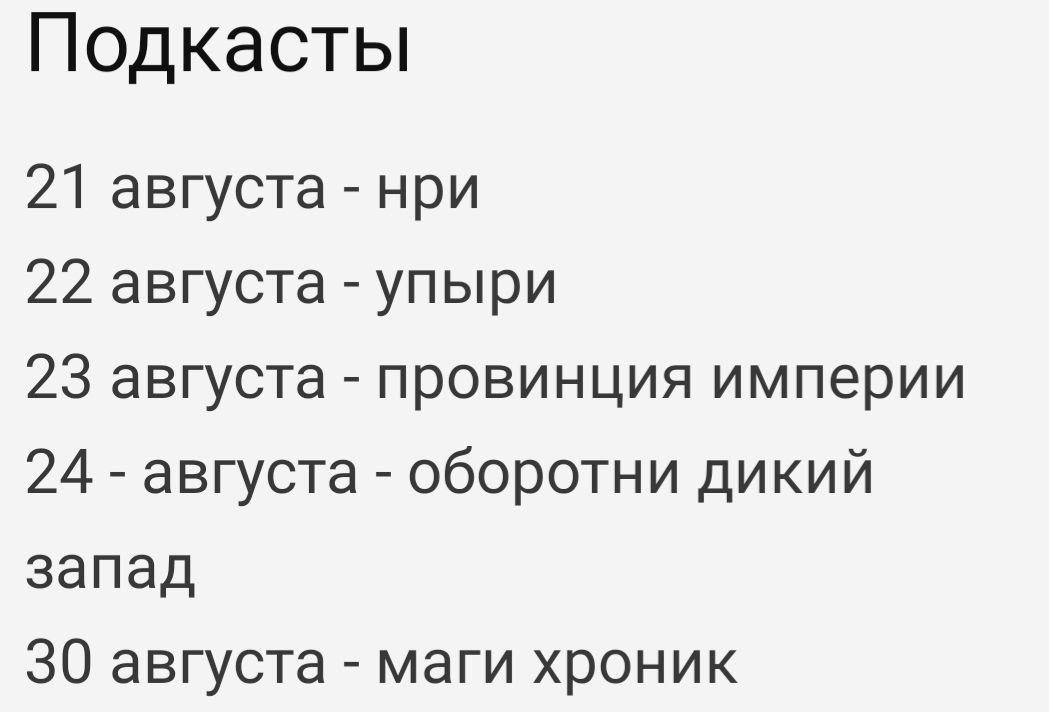 Вот так вот выглядит план записи подкастов. Осталось только понять как найти время смонтировать уже записанные при такой загруженности.