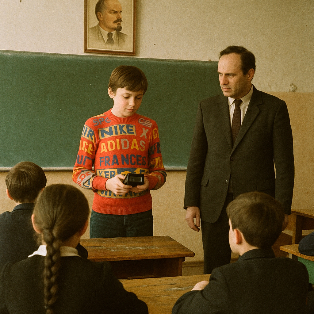 Он стоял у доски и уверенно говорил, что просто «гуглил Петра Первого». Это было в московской школе в 1971 году. Учитель подумал — шутка, но в руке у мальчишки была чёрная коробка с экраном, где светились слова «внешняя политика Петра I — Википедия». На ногах — кроссовки без шнурков, на спине — рюкзак с надписью «NASA». Его отвели к директору. Через полчаса пришли двое в кожаных плащах, не представились. Забрали мальчика, не оставив записей. Только завуч, дед одного преподавателя, сохранил фотографию: на экране того «телефона» ясно видно дату — 2 сентября 2014 года. В архиве нет ни имени, ни фамилии. Он будто провалился. Или пришёл оттуда. Так мне рассказал один старый преподаватель — мужик пожилой, в библиотеке с ним разговорились. Дед его был завучем в московской школе в начале 70-х, когда всё это и случилось. Случай, который никто в открытую не обсуждал, но про который, по его словам, в учительской потом говорили годами. Было это в 1971 году. Школа стояла в тогдашнем новом районе, к