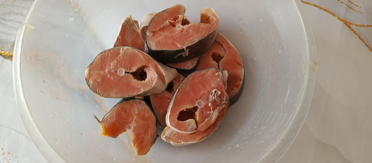 Добрый день, дорогие друзья! Сегодня хочу поделиться рецептом сочной, мягкой, совершенно не сухой, жареной горбуши. Горбушу промыть, очистить от плавников и хвоста. Нарезать на слайсы толщиной 2-3 см. Залить молоком любой жирности, чтобы покрывало рыбу полностью. А чтобы наверняка рыбка была полностью в жидкости, накрыть тарелкой. Оставить в молоке не менее 2 часов. По истечении времени , достать, промыть водой и обсушить. Насыпать в плоскую ёмкость муку, добавить соль. Обвалять кусочки рыбы в муке. Либо проделать это в полиэтиленовом мешке со смесью муки и соли. Обжарить в кипящем масле на сковороде до золотистого цвета с двух сторон. Для гарнира неразмороженную брокколи выкладываем в сильно кипящую подсоленную воду. Как закипит вода с капустой кипятим ровно 2 мин. Потом быстро выкладываем в холодную воду, даже ледяную, чтобы брокколи не потеряла свой цвет и не развалилась. Рыбка поджарилась, Красивая и хрустящая. Достаем из сковороды на бумажные полотенца, чтобы удалить лишний