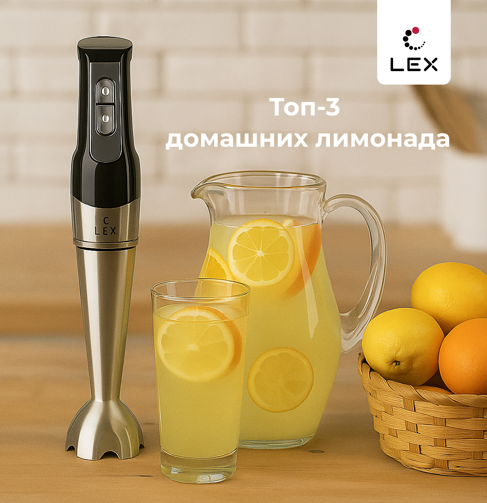 Добавьте лёд, залейте газированной водой, украсьте мятой. Лайфхак: лучший помощник в приготовлении лимонадов — погружной блендер LEX. С ним напитки получаются ещё нежнее и ярче по вкусу!