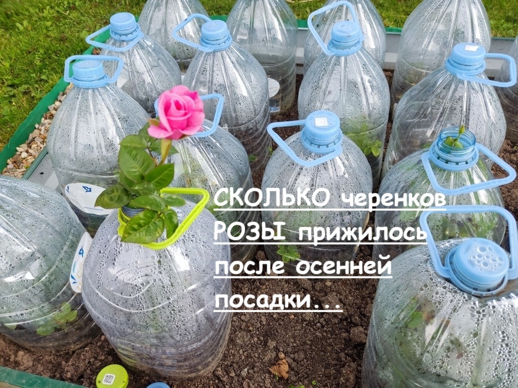 Осенью, после обрезки роз перед укрытием, у меня осталось много хороших розовых веток. И я нарезала черенки и посадила их под банки. Покажу, сколько черенков прижилось...