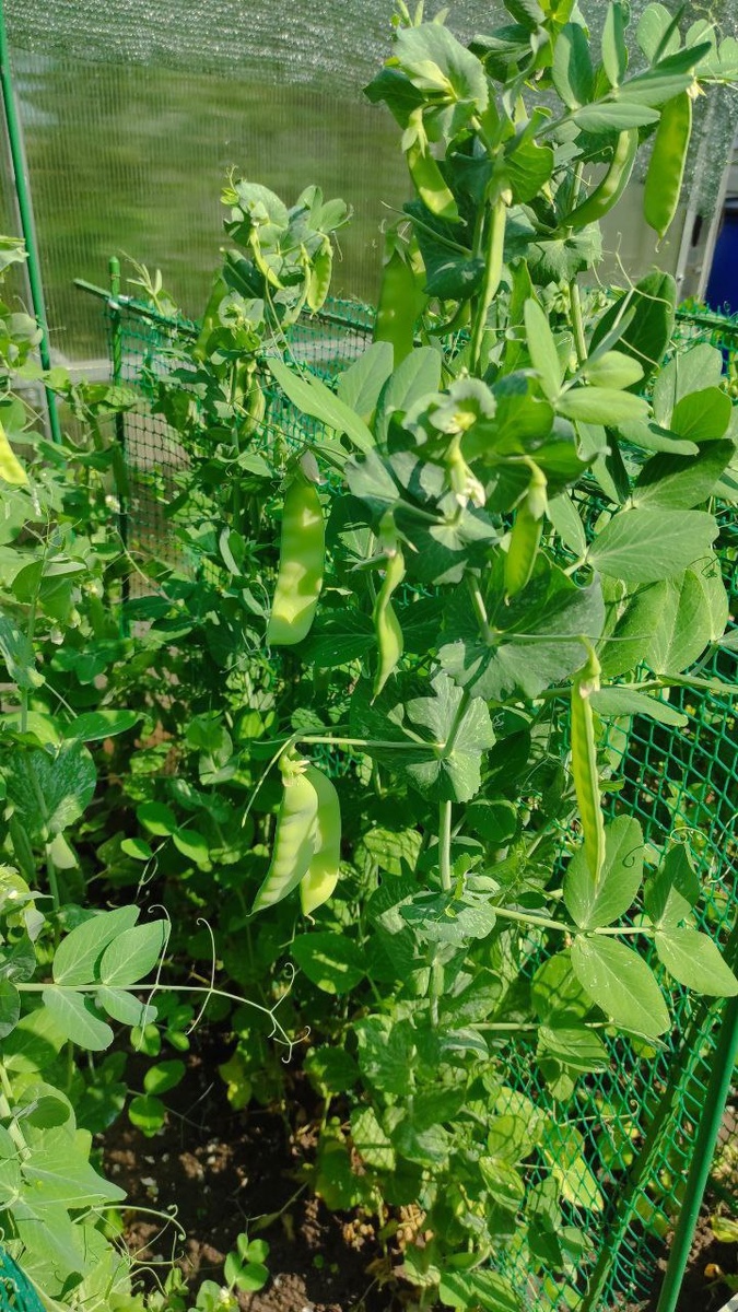 💚Горошек. Посеяла в этом интересном году раза три. Что взойдет, что не хочет. Кабачок жёлтый, люблю яркий. Тыковка, кабачок и помидорки (что не поместились в теплице), еще горох на длинной грядке за теплицей. На полном солнце растут☀️ Нашла один куст томата Сумасшедшие Вишни Барри. Я думала, что все раздала... Как зацвел, я его сразу узнала 😘