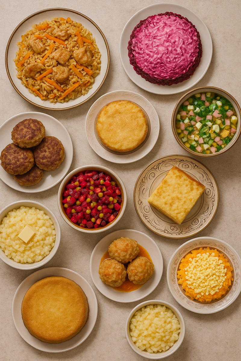 1970-е — это особая эпоха в истории советской кухни. Несмотря на ограниченность продуктов и скромные магазины, советские хозяйки умудрялись готовить по-настоящему вкусно. Каждое блюдо было насыщено любовью, терпением и настоящим домашним уютом. Сегодня я собрала для вас 10 легендарных рецептов из 70-х годов — пошагово, подробно, со всеми нюансами. От винегрета до "Мимозы", от котлет до тёплого манника — всё, что ели в каждой семье. Эти рецепты передавались из рук в руки, из блокнота в блокнот, и вот — теперь они у вас.