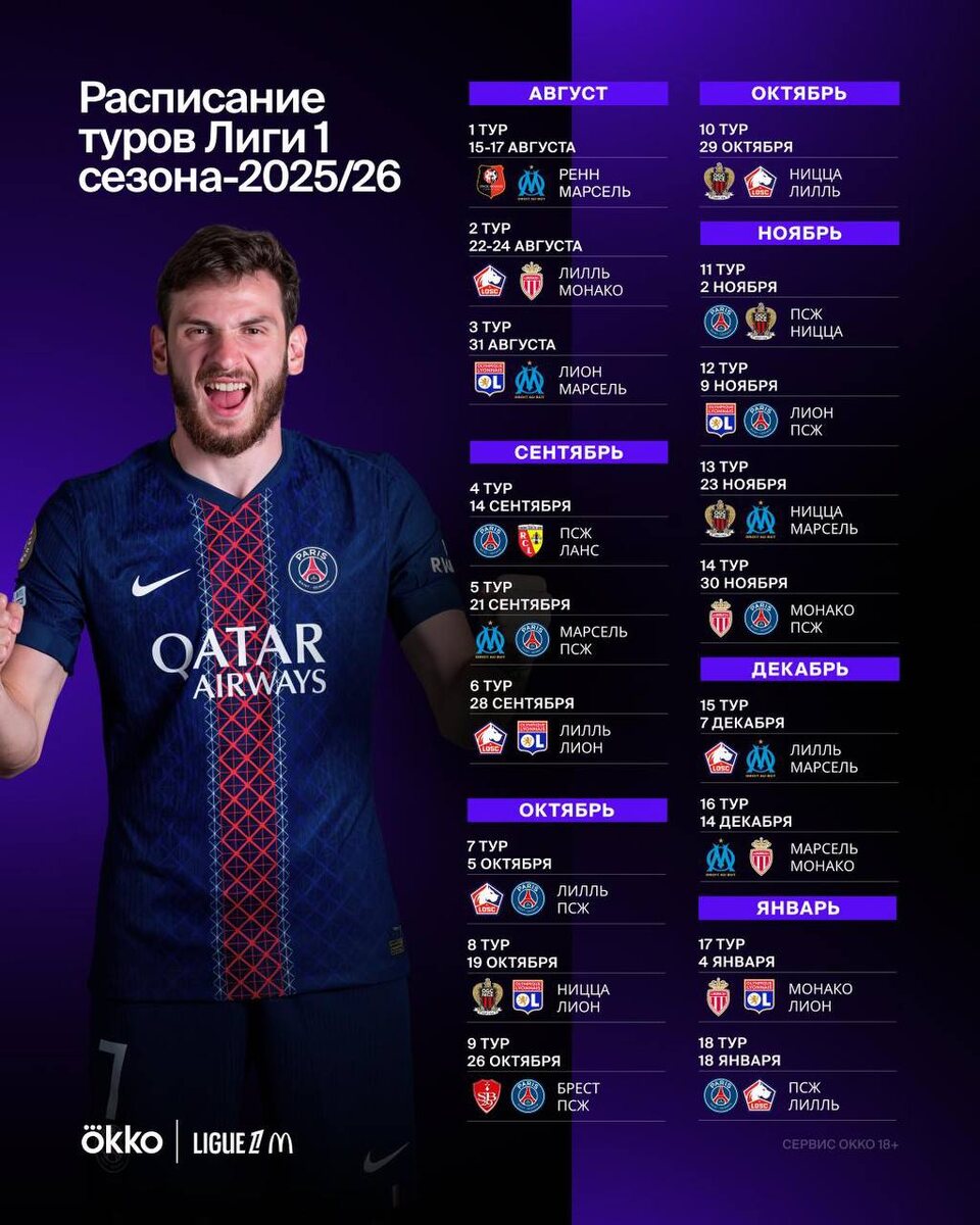 С 15 августа начнется новый сезон Лиги 1 в Okko. Показываем расписание туров 🏆
