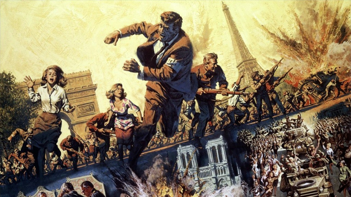 Горит ли Париж? / Paris brûle-t-il? Франция, 1965. Режиссер Рене Клеман. Сценаристы: Гор Видал, Фрэнсис Форд Коппола, Марсель Мусси, Жан Оранш, Пьер Бост, Клод Брюле (по книге Доминика Лапьера и Ларри Коллинза). Актеры: Жан-Поль Бельмондо, Ален Делон, Шарль Буайе, Лесли Карон, Жан-Пьер Кассель, Джордж Чакирис, Бруно Кремер, Клод Дофен, Пьер Дюкс, Гленн Форд, Герт Фрёбе, Даниэль Желен, Жорж Жере, Ив Монтан, Энтони Перкинс, Мишель Пикколи, Вольфганг Прайс, Клод Риш, Жан-Луи Трентиньян, Орсон Уэллс, Бернар Фрессон, Кирк Дуглас, Симона Синьоре и др. Драма. Премьера: 26.10.1966. Прокат во Франции: 4,9 млн. зрителей. Черно-белая драма «Горит ли Париж?», намеренно снятая в стиле хроники второй мировой войны, собрала огромный букет французских, американских и британских звезд первой величины. История восставшего Парижа августа 1944 года отражает реальные исторические события, и «в том, что личность как бы заслонена коллективным портретом, — свой расчет и своя сила. На нем запечатлен лик мужест