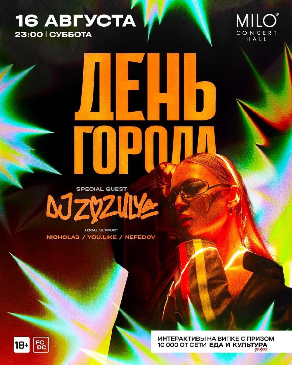 16 августа в Milo Concert Hall Специальный гость из столицы — ZOZULYA. Резидент московской тусовки Secret Room, одна из самых харизматичных и востребованных ди-джеев России. Local support: Nicholas / Youl1ke / Nefedov 😄 Мероприятия Нижний Новгород. Я местный!