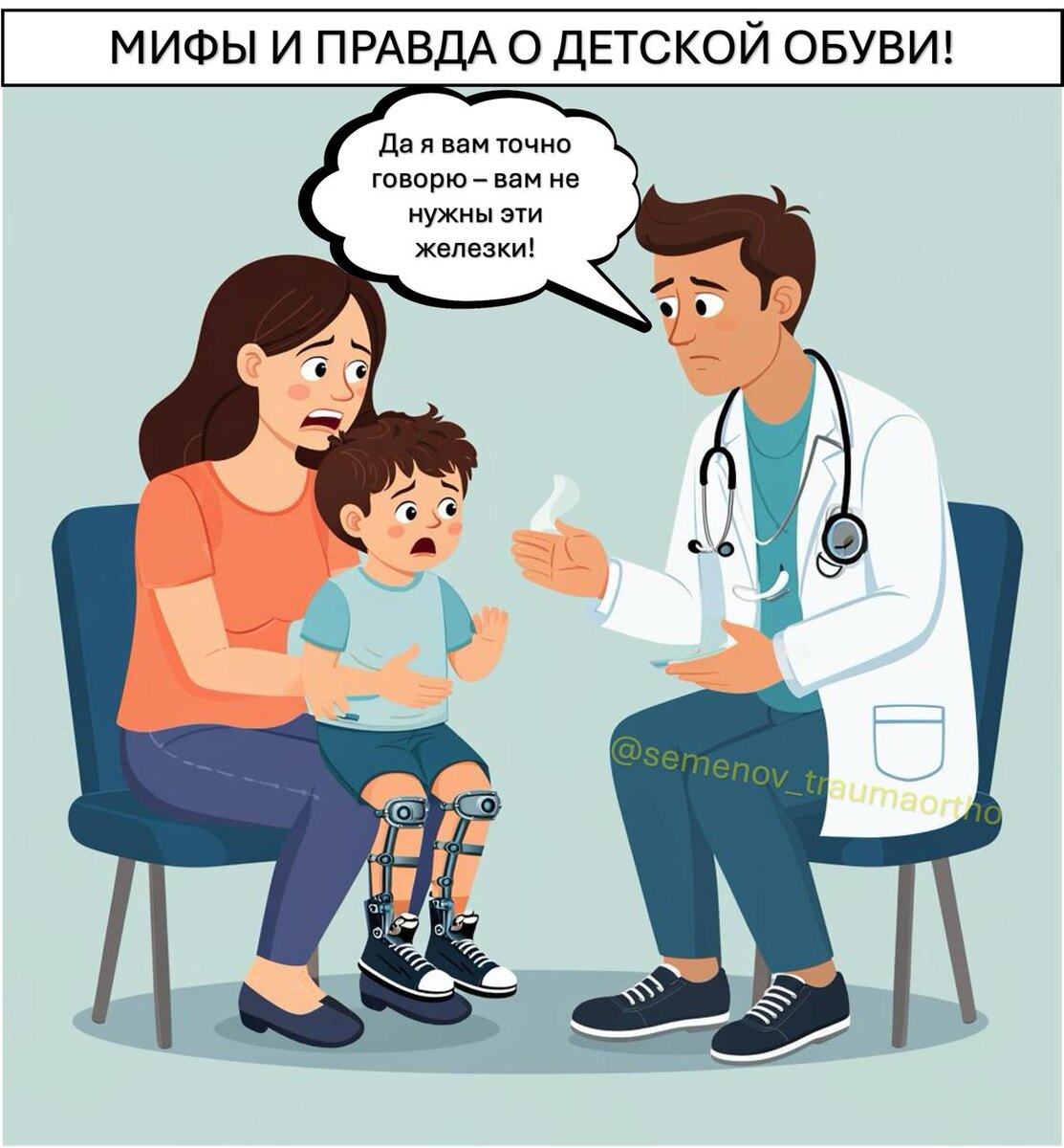 ➡️"Ортопедическая" обувь для ребенка: спасение или маркетинг? Разбираем мифы👞 👋Привет, друзья! Андрей Семенов на связи. 👨⚕️ 🔜Выбор первой обуви для малыша... Сколько же вокруг этого споров, мифов и родительских тревог! 📎Жесткий задник, высокий берц, "волшебный" супинатор – многие рисуют картины страшных последствий, если не купить ту самую, "правильную" пару. 👇Но что об этом говорит наука и современная ортопедия? Давайте раз и навсегда отделим факты от маркетинговых уловок. ⚠️Это первый пост из большой серии, посвященной здоровью детских стоп. ✔️В конце мы соберем полное руководство и даже создадим интерактивную страничку, которая поможет вам в выборе! ✔️А сегодня – разрушаем мифы. ✖️ Миф №1: Здоровому ребенку для профилактики нужна "ортопедическая" обувь. ✔️Правда: Здоровому ребенку НЕ НУЖНА специальная "ортопедическая" обувь с жесткой фиксацией и супинаторами. Более того, она может быть ВРЕДНА. 🦶 Физиологическое плоскостопие (до 6-7 лет) – это НОРМА. Свод стопы формиру