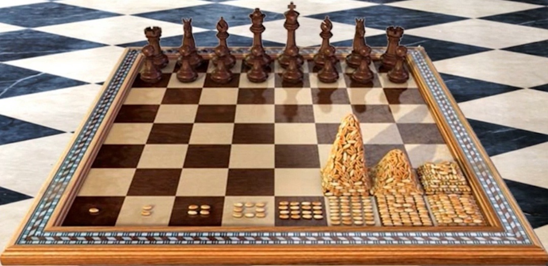 🔸Считается, что шахматы появились более полутора тысяч лет назад. Название происходит от персидских слов «шах» и «мат», что означает в переводе повелитель умер. По легенде шахматы придумал один мудрец. Однажды он показал игру правителю страны. Тому так она понравилась, что он предложил мудрецу выбрать любую награду, какую тот пожелает. Мудрец сказал, что ему нужно столько зёрен пшеницы, сколько получится, если на первую клетку положить одно зерно, на вторую два, на третью в два раза больше и так далее удваивая количество до конца доски. Правитель согласился, подумав, что мудрец запросил слишком мало, и распорядился казначею выдать запрошенное. Спустя неделю правитель поинтересовался, почему мудрецу до сих пор не выдано нужное количества зерна, на что казначей показал расчёты и сказал, что расплатиться возможно, только если осушить все моря и океаны и это пространство засеять пшеницей.