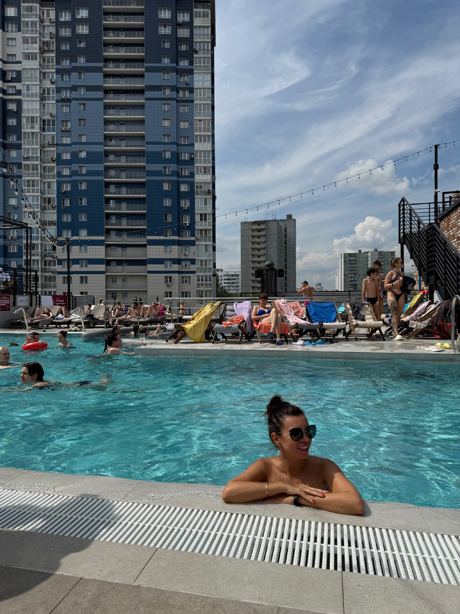 Честно, у меня случился шок) но, надо признаться я летом в Москве в бассейны на закрытых территориях не ходила, но судя по лицам и поведению людей, там все нормально, традиционно было. Я имею ввиду количество людей! Вот знаете, как мемы гуляют про берега Анапы или Геленджика, где не видно песчаного берега из-за тел. Вот тут так же, поверхности вокруг бассейна не видно вообще. Стулья и лежаки как в кинотеатре плотно один к одному, как будто все одна большая шведская семья.