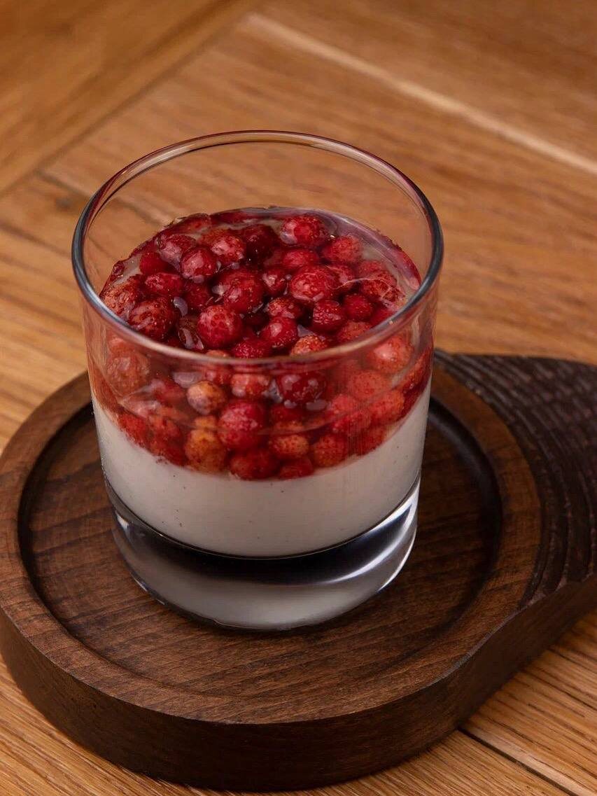 Панакотта с лесной земляникой — десерт, который говорит сам за себя. Тонкий баланс сладости и свежести, бархатная текстура и яркий ягодный акцент.