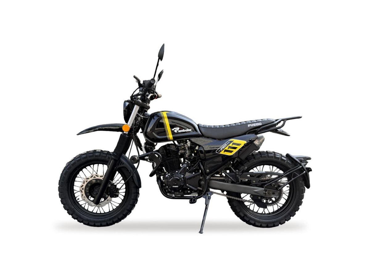 Новинка 2025 года – FUEGO Rambolor 250 Air! Уже доступен к покупке в официальном интернет-магазине: https://vesna-moto.ru/product/fuego-rambolor-250-air-chernyj/ https://vesna-moto.ru/product/fuego-rambolor-250-air-krasnyj/ Стоимость: 199.900 руб. FUEGO Rambolor 250 Air, уникальный по классу и назначению байк, который позволит райдеру реализовать две стихии — дерзкие городские катания без ограничений по локациям и направлениям и хулиганские, но стильные прохваты по пересеченке. Мотоцикл уверенно ведет себя в плотном уличном траффике, позволяя держаться в потоке или лихо опережать пробки, задействуя свой внедорожный потенциал. Позволяет не выбирать легкий путь на проселках, а мчать во весь газ по ухабам и неровностям, сохраняя за всадником полный контроль и необходимый комфорт. Стоит добавить к стильному образу и универсальному назначению нового Rambolor от FUEGO легендарную надежность, ремонтопригодность и полную доступность запчастей, и вот он — идеальный байк для начинающего райде