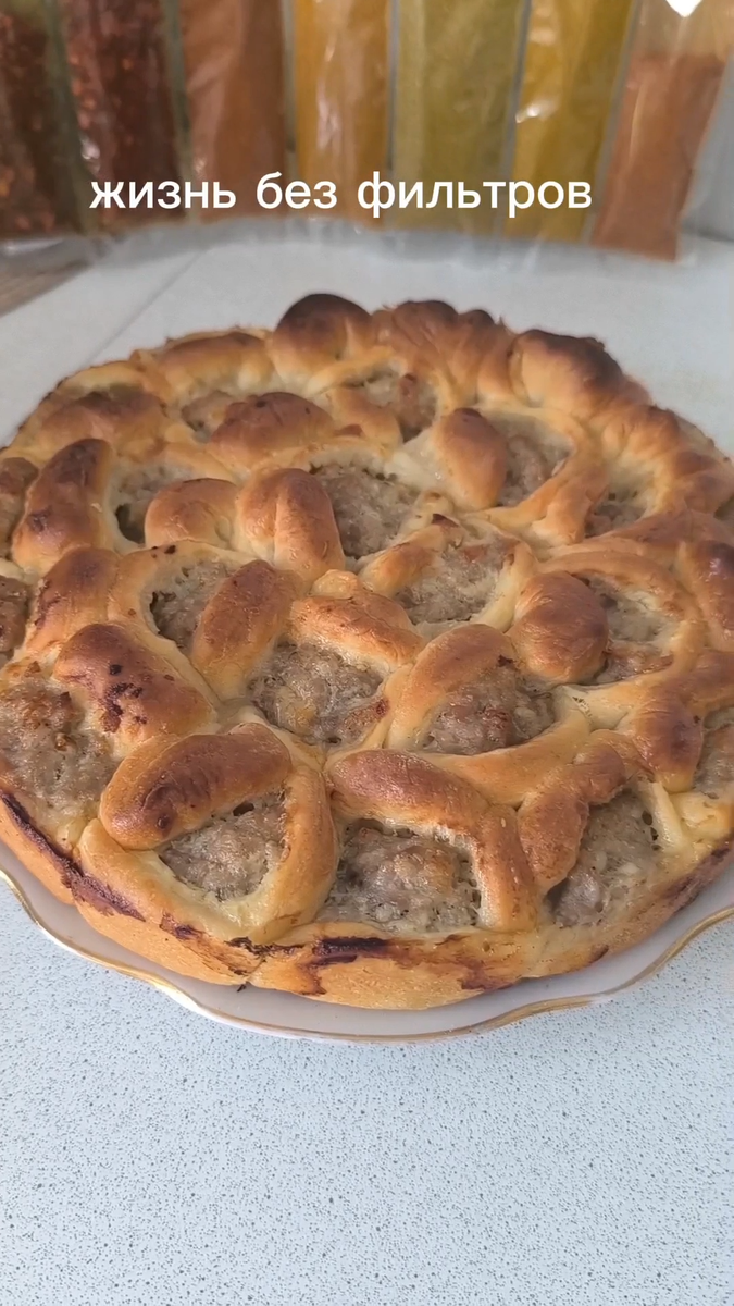 Необычный пирог, сочный очень , для чаепития когда собирается вся семья. Делаем тесто, кефир, молоко тёплое , яйцо, соль, сахар, масло растит., дрожжи сухие и просеянная мука. Замешиваем тесто, оно получается мягким и не липнет к рукам , оставляем подниматься на 1-1,5 часа. Пока тесто поднимается, займёмся фаршем, у меня фарш покупной( свинина говядина ) лук измельчила блендером, добавила соль, Перец черный молотый , и по желанию сыр. Тесто поднялось. Раскатываем и стаканом вырезаем кружки примерно 5-7 мм . В центр кругляша кладём фарш и защирываем ток края, на фото показано. Складываем в форму. Желток смешиваем с одной ложкой молока и смазываем наш пирог. Даём постоять и отправляем в заранее разогретую духовку на 35 минут при 180 гр. Наш пирог готов, выкладываем на тарелку, можно есть с пылу жару а можно и остывшим , он очень сочный а тесто просто пальчики оближешь. Пирог " Беляш" мясной разборник ❤️ Ингредиенты: ✓ Кефир - 130 мл ✓Молоко -130 мл ✓ Яйцо - 1 шт ✓ Соль - 1 ч л ✓Сахар -