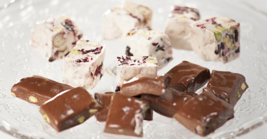 Нуга пришла в кухни европейских стран с Востока и была отнесена к категории изысканных восточных сладостей. Основным ингредиентом , отличающий этот десерт. являются орехи различных видов ( кроме арахиса ). Традиционный рецепт изготовления нуги состоит в следующем. Цельные или дробленые орешки выкладывают в форму, застланную промасленной бумагой, толщиной примерно 1 - 2 см , затем заливают медом или сахарным сиропом. По вкусу можно ароматизировать нугу лимонным соком, корицей, ванилью. После застывания продукт режут на небольшие кусочки или формируют различные фигурки и обваливают их в сахарной пудре иногда смешанной с мукой. Часто кулинары при изготовлении нуги закладывают в смесь цукаты или сухофрукты ( изюм , курагу, инжир, чернослив и др. ), ароматизируют ромом или коньяком.
