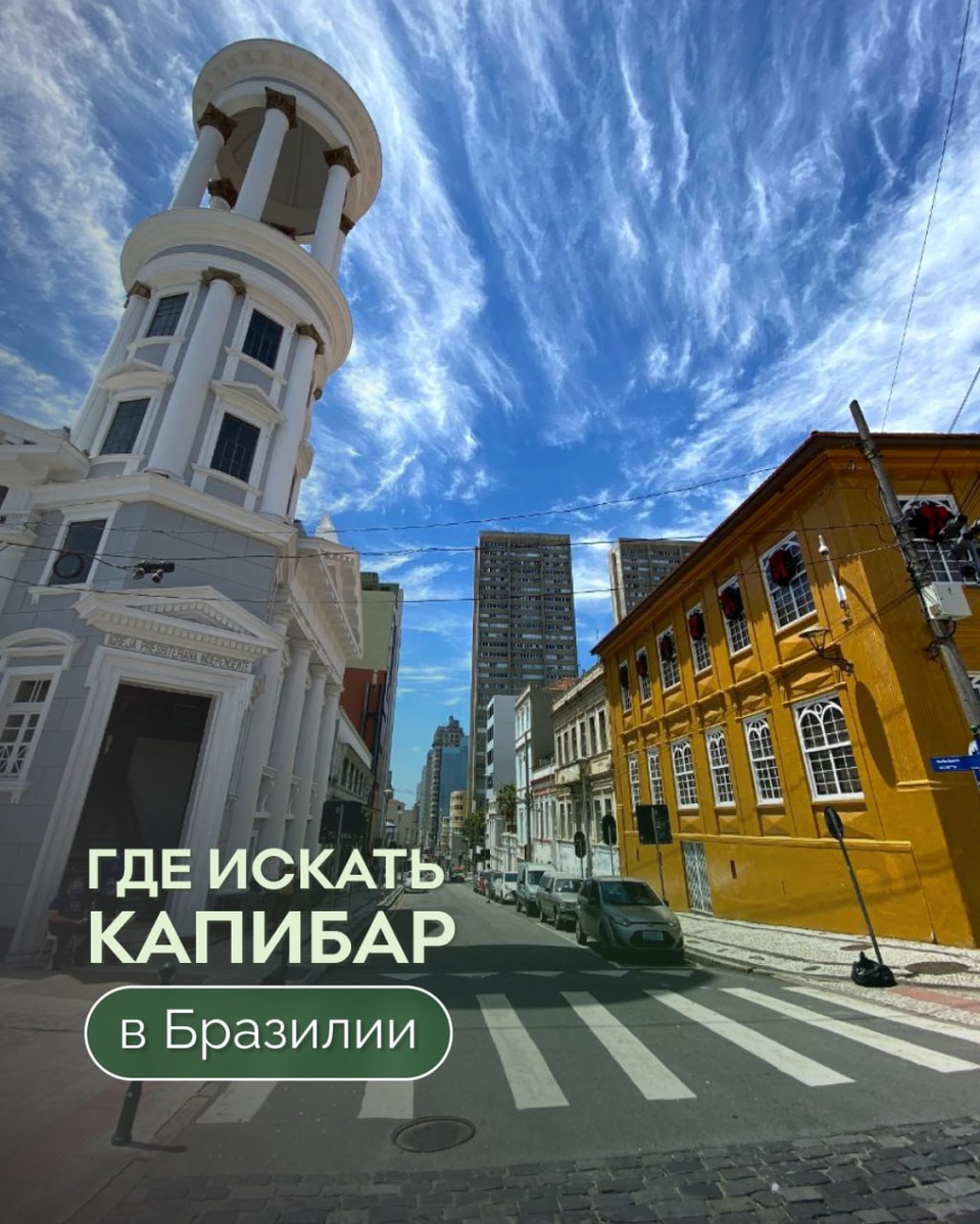 🤩 Хотите потискать капибару? Тогда вам в Куритибу. Этот город, столица штата Парана в Бразилии, находится всего в 4 часах езды от Флорианополиса. Куритиба – это не только милые капибары! Здесь вас ждёт красивая архитектура, множество исторических зданий и забота о комфорте жителей. ☝️ Знали ли вы, что именно в Куритибе впервые появились скоростные автобусы, курсирующие по выделенным линиям с минимальными интервалами? Эта идея оказалась настолько удачной, что её позаимствовали многие мегаполисы мира. А еще в Куритибе много молодёжи, интересных музеев и вузов. Например, чего стоит один только музей "Глаз", созданный по проекту знаменитого архитектора Оскара Нимейера. Но вернемся к капибарам. 💖 В парках Куритибы эти спокойные и дружелюбные зверюшки чувствуют себя как дома. Они не боятся людей, так что вы сможете подойти к ним совсем близко и даже погладить. 😉 Куритиба – яркий, зелёный и самобытный город, который точно стоит посетить. А вы хотели бы погладить капибару?