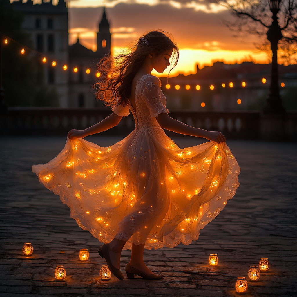 Каждый вечер, когда солнце касалось горизонта, превращая небо в пепел и янтарь, она появлялась. Её платье, сотканное из серой пыли и забытых воспоминаний, шуршало, как страницы старых книг. На заброшенной площади, где трещины в брусчатке напоминали карту иных миров, она зажигала фонари. Не простые — те, что висели на ржавых цепях, вспыхивали алым, будто в них горели не свечи, а капли заката. Местные шептались, что когда-то здесь кипела жизнь: смех, рынки, музыка. Теперь же площадь поглотила тишина, и только она, Танцующая, возвращала ей голос. Её движения были ритуалом: взмах рукой — пламя оживало, поворот тела — тени на стенах складывались в письмена, которые никто не мог прочесть. Говорили, что если осмелиться подойти ближе, можно услышать, как пепел её платья шепчет истории тех, кто исчез, последовав за огнями. Однажды мальчик с лицом, изрезанным голодом и любопытством, шагнул за пределы страха. Он шёл за мерцающими огнями, которые вели сквозь арку, поросшую плющом. Там, где кончал