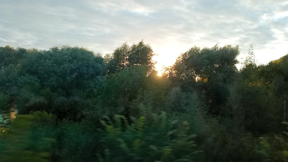 Через всю Россию на поезде. Первый день поездки. Часть 6. Первый закат в поезде в пути до Нижнего Новгорода.