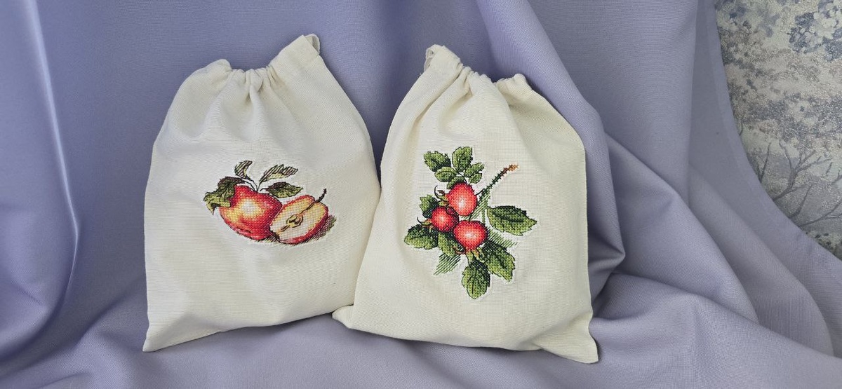 Я еще не сняла видео про готовую работу, а уже отдала маме мешочки для заполнения! 🍎🍏🍐🥭🍋