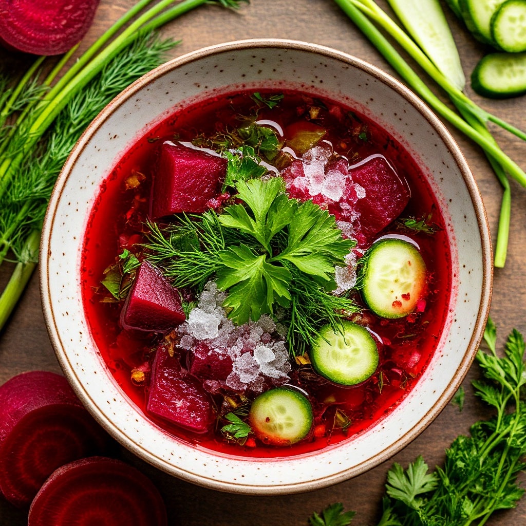 Хотите попробовать нечто по-настоящему необычное из русской кухни? Познакомьтесь с ботвиньей — это легендарный холодный суп из зелени, овощей и кваса, которым спасались от жары ещё на Руси до появления окрошки. Вегетарианский вариант ботвиньи — отличная находка. Ведь там минимум калорий, максимум ярких витаминов и чистого вкуса природы. Готовится суп просто и быстро, зато эффект — вау! Идеален для летнего обеда, разгрузочного дня или тем, кто ищет оригинальные рецепты со свеклой, щавелем, ботвой и свежей зеленью. В отличие от привычной окрошки или классического гаспачо, ботвинья впечатляет многообразием вкусов, ароматом свежих трав и тонкой кислинкой кваса. Такой суп отлично впишется в современное ПП-меню, удивит новичков и знатоков русской кухни. (2-3 порции) - 1 большая свекла - 1 литр воды - 1 ч.л. соли - 2 лавровых листа - 100 г шпината - 100 г щавеля - 100 г свекольной ботвы - 30 г молодой крапивы - 2 средних огурца - 1 варёная свекла - Зелень: укроп,