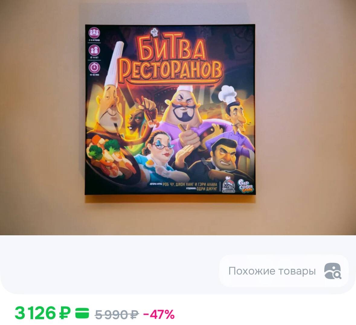 Нашли самую увлекательную настолку для большой компании — в «Битве ресторанов» можно почувствовать себя настоящим владельцем заведения. У каждого из участников игры есть свой ресторан, а главная цель — вывести его на первое место в рейтинге. В наборе помимо карточек есть куча других фигурок и атрибутов. Обещают, что время с этой настолкой пролетит незаметно и сделает вечер с друзьями запоминающимся. На маркетплейсах «Битва ресторанов» с дополнением обойдется в 4 тысячи рублей.