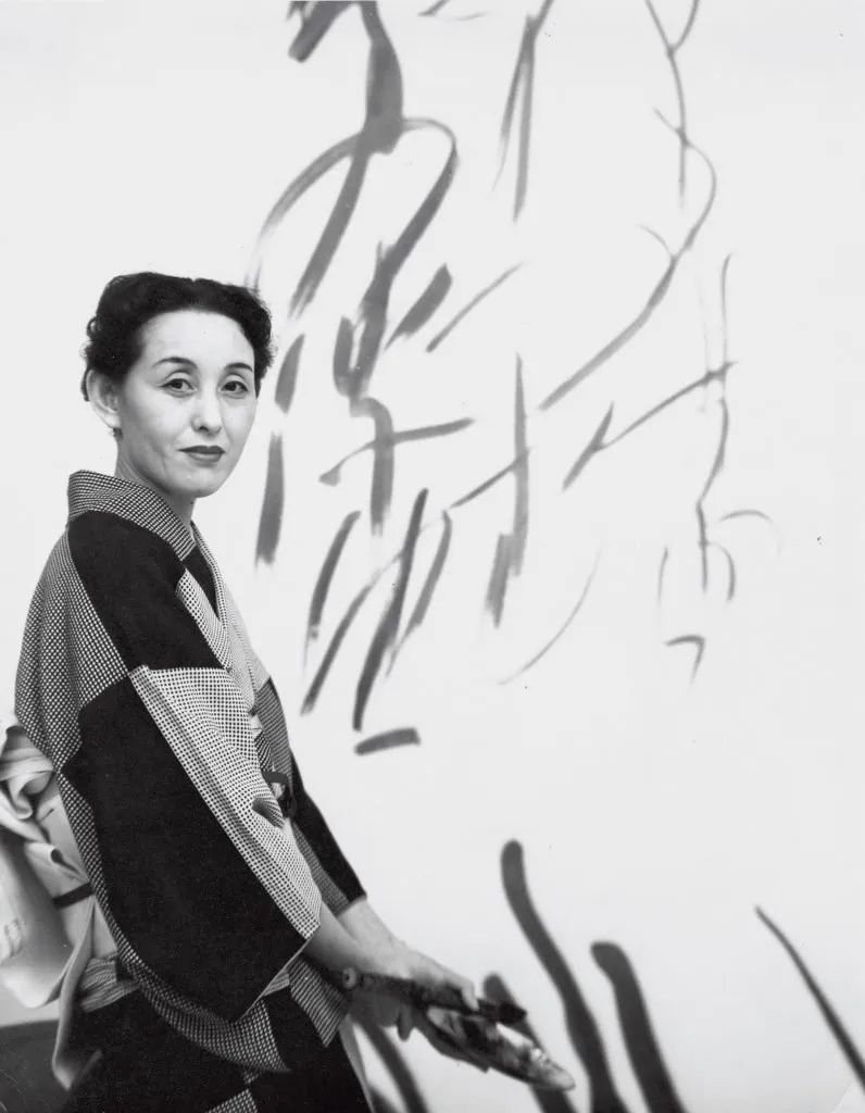 В 1953 году она выставлялась в Музее современного искусства в Нью-Йорке, а в 1956 году переехала в этот город и живо вспоминает то время в интервью газете Japan Times: "Сначала я была поражена свободой, которой обладали американские художники. В Японии мы привыкли копировать каллиграфию мастеров, но в то время в Нью-Йорке от художников ожидали чего-то нового и непохожего. Это было началом абстрактного экспрессионизма, и художники были призваны создавать новые формы. Я смогла придать своим работам, сначала основанным на каллиграфии, новые формы, и я думаю, что сначала это произошло в Нью-Йорке, а затем продолжилось, когда я вернулась в Японию."