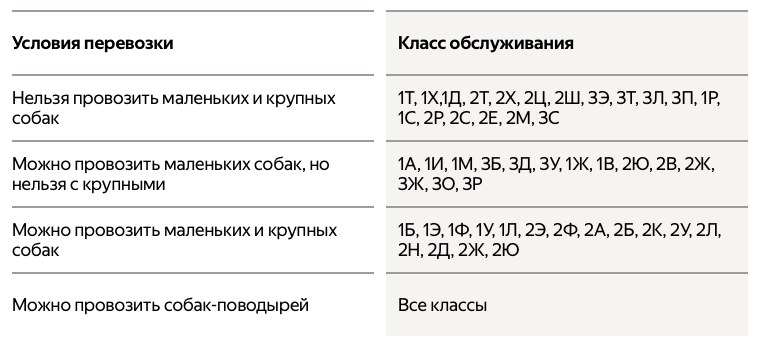 У вагонов разных классов обслуживания свои требования к перевозке животных.